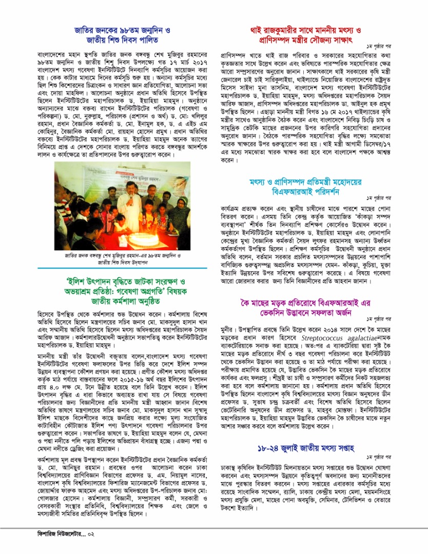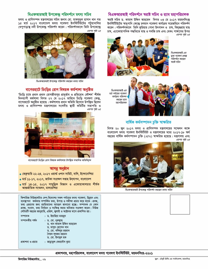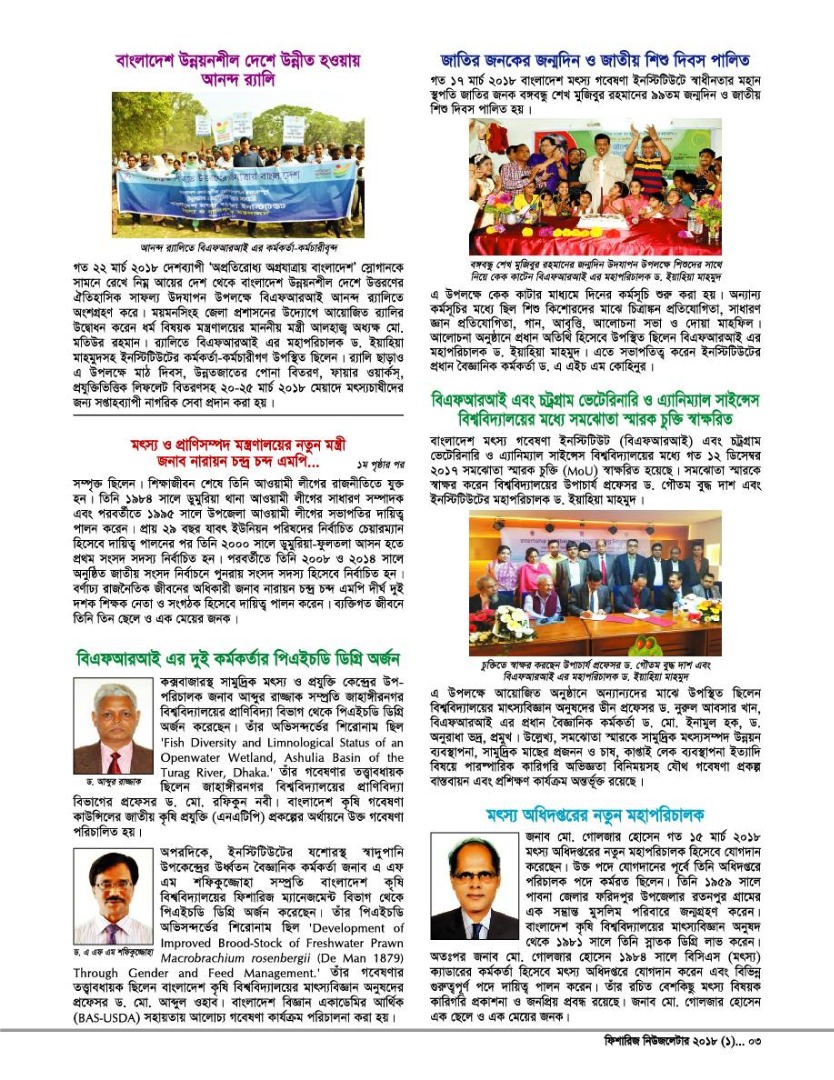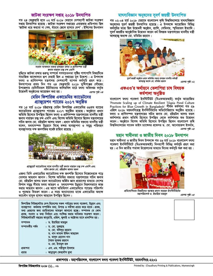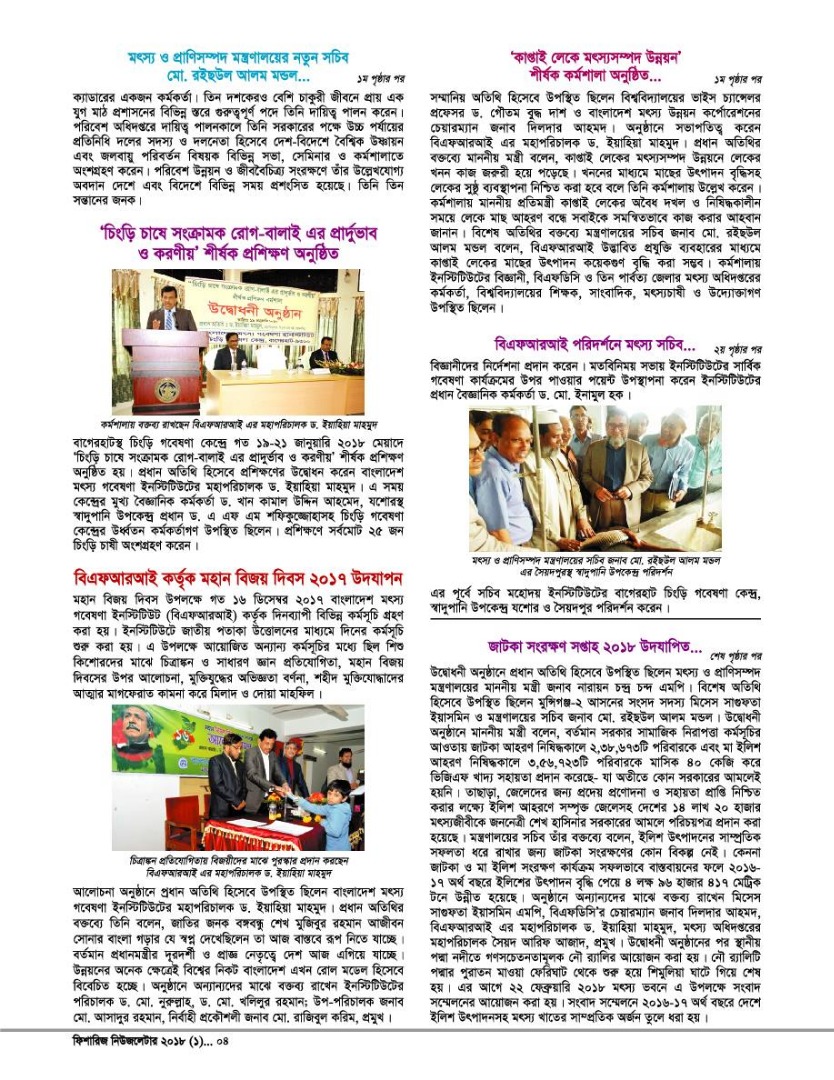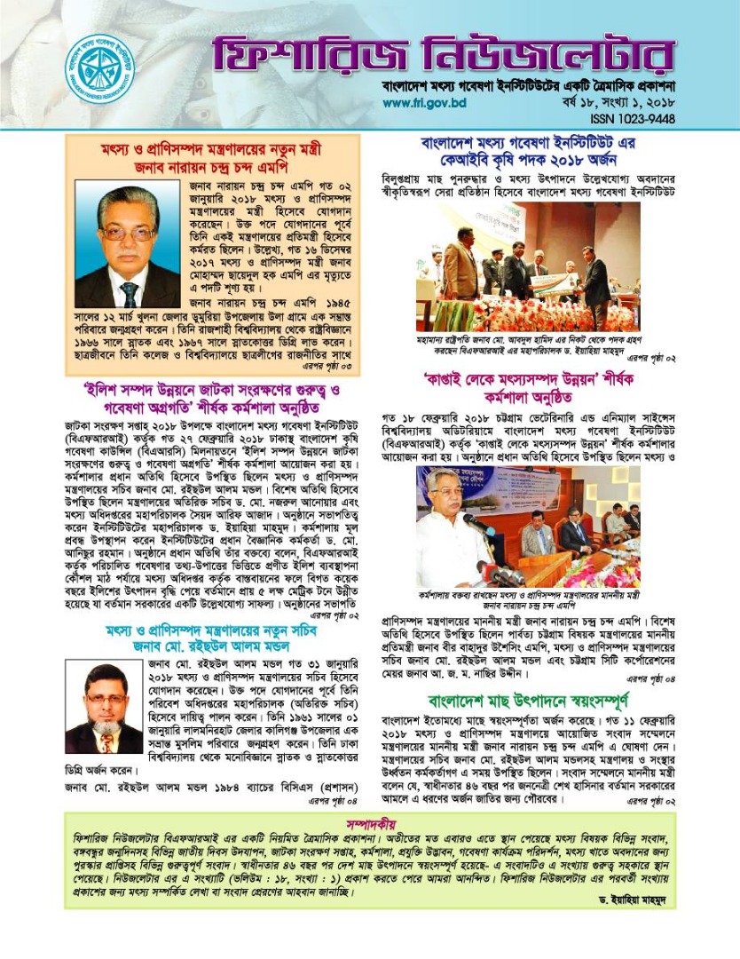 | ৪. | ফিশারীজ নিউজ লেটার, ত্রৈমাসিক প্রকাশনা, বর্ষ-১৮, সংখ্যা ১, ২০১৮ইং (বাংলা ভার্সন) | বাংলা-১, বাংলা-২, বাংলা-৩, বাংলা-৪, বাংলা-৫, বাংলা-৬ | |