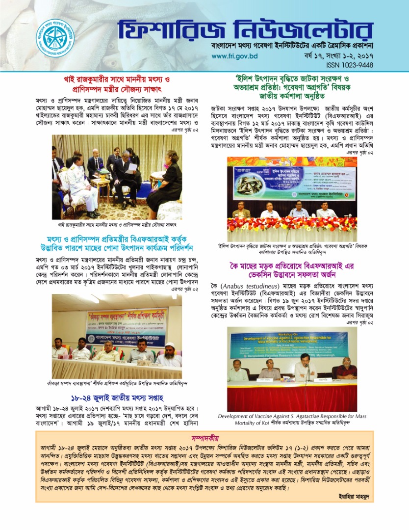 | ২. | ফিশারীজ নিউজ লেটার, বর্ষ-১৭, সংখ্যা ১-২, ২০১৭ইং (বাংলা ভার্সন) | বাংলা-১, বাংলা-২, বাংলা-৩, বাংলা-৪, বাংলা-৫, বাংলা-৬ | |