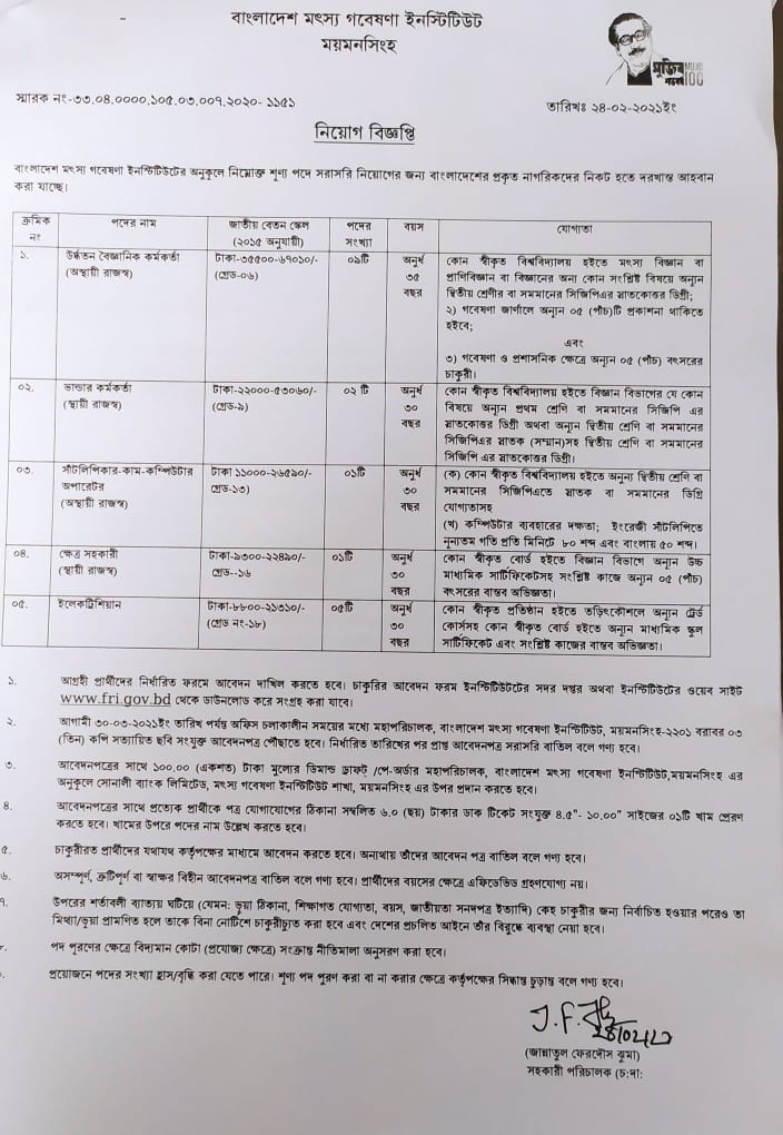 নিয়োগ বিজ্ঞপ্তি স্মারকঃ ৩৩.০৪.০০০০.১০৫.০৩.০০৭.২০২০/১১৫১; তারিখঃ ২৪/২/২০২১ |