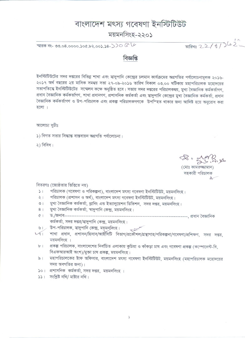 | মৎস্য ও প্রাণিসম্পদ মন্ত্রণালয়ের ২৪/৭/২০১৯তারিখের ৩৩.০০.০০০০.১৩০.১১.০২৯.৯৮-২৩৮ সংখ্যক প্রজ্ঞাপনের মাধ্যমে ্নিস্টিটিউটের প্রধান বৈজ্ঞানিক কর্মকর্তা (গ্রেড-৪) পদে পদোন্নতিপ্রাপ্ত কর্মকর্তাগণকে বর্ণিত কর্মস্থলে পদায়ন করা হলো। | ![]() |