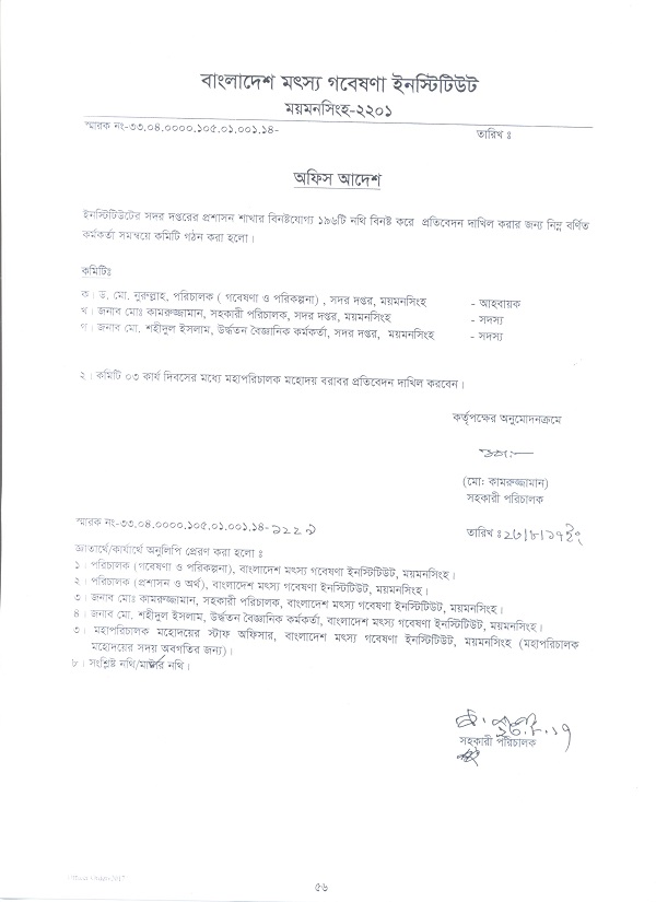 | চিংড়ি গবেষণা কেন্দ্রের ক্যাশিয়ার (সাময়িক বরখাস্তকৃত) জনাব মোঃ বাহারুল আলমের বিরুদ্ধে গঠিত তদন্ত কমিটি | ![]() |