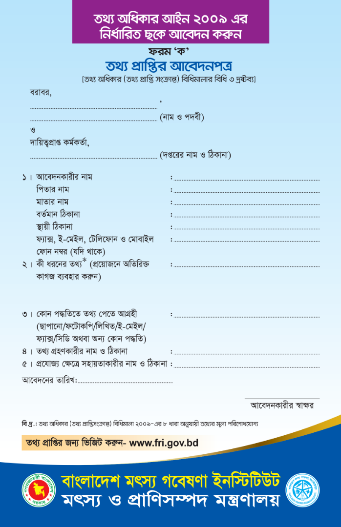 ২। | তথ্য অধিকার আইন ২০০৯ অনুযায়ী আবেদন ফরম | আবেদন ফরম |